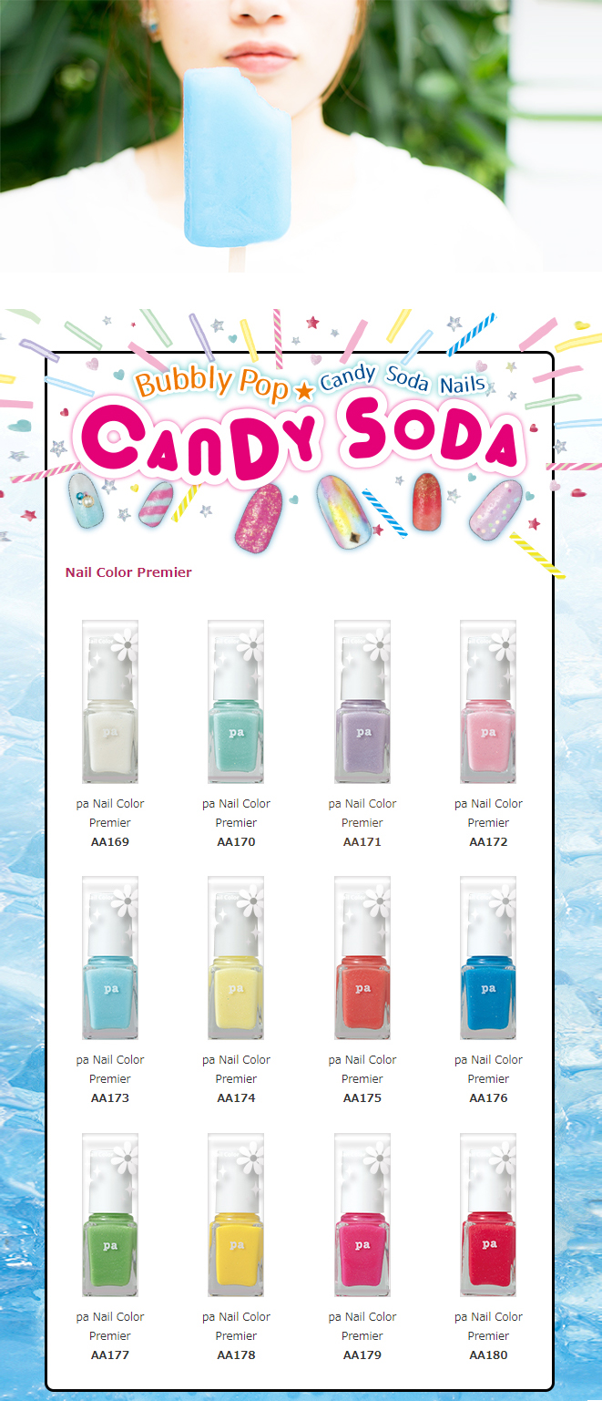 "Pa" which you often see in shops at petit plain nails ★ POP color nail «candy soda» perfect for spring and summer! As well as monochrome painting, you will be able to enjoy various arrangements · colors so you will want to gather all the colors together ♡ Candy soda arrange will be introduced together! It is pretty with POP which expressed "squatting food texture" which imaged soda and "drop glitter feeling" attached to the glass as if it is like a candy Expanding in 12 color colors ♡