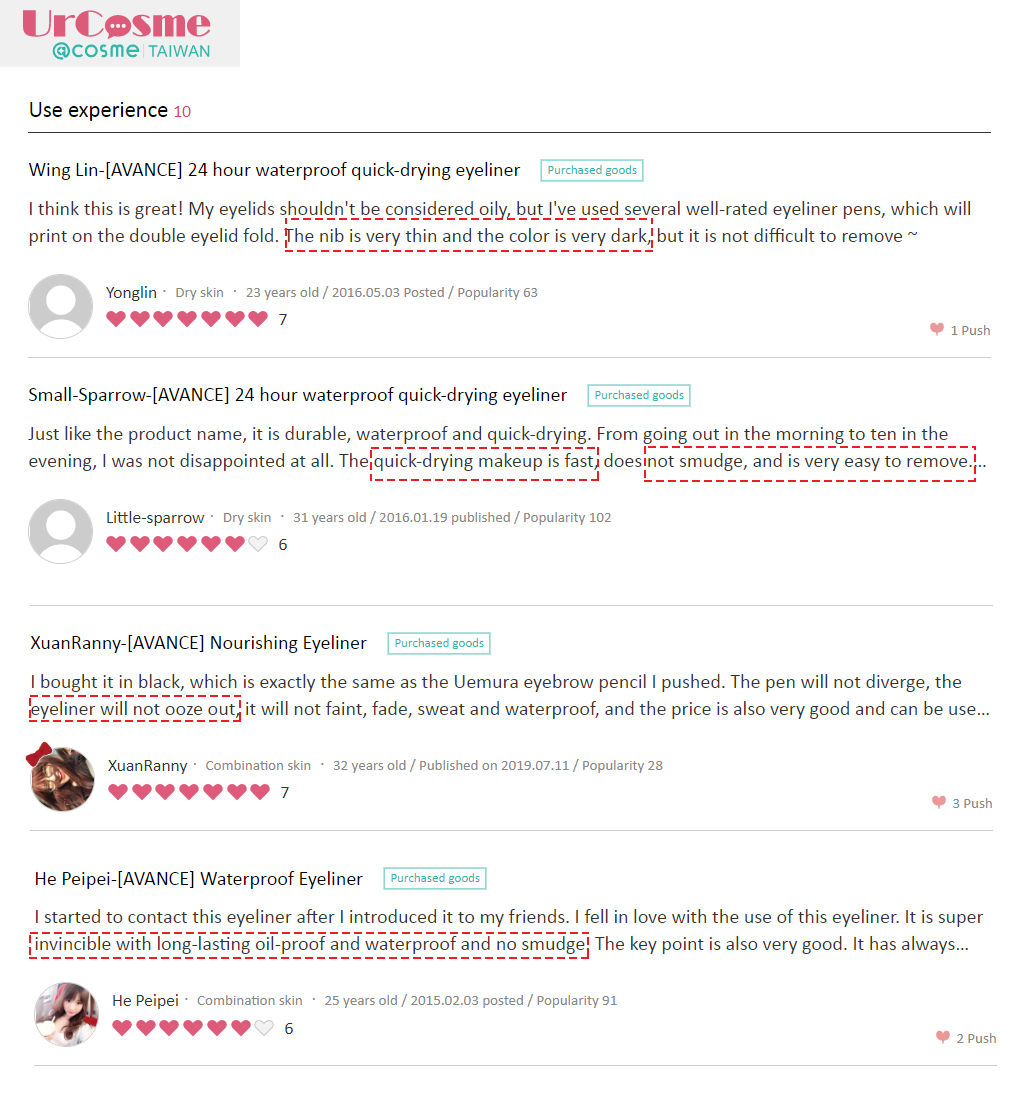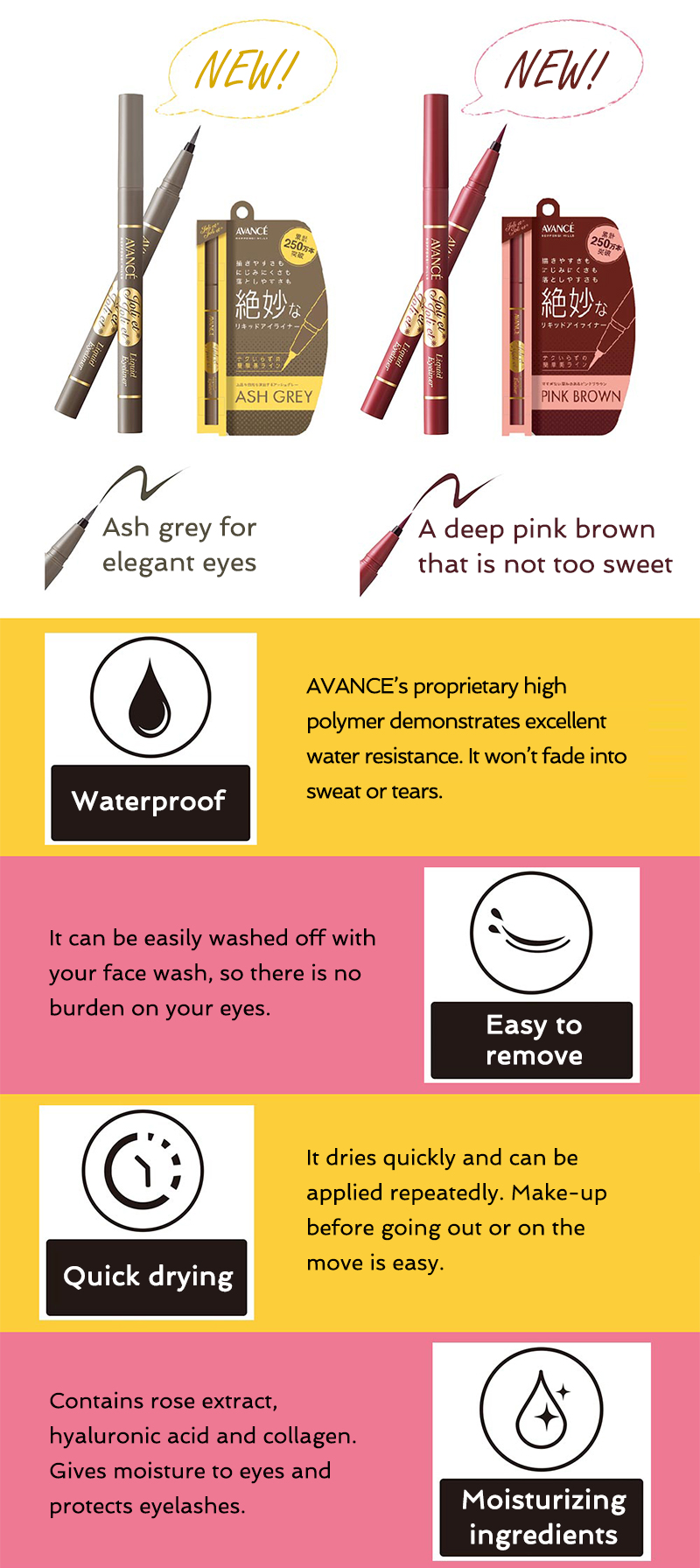 Liquid eyeliner that produces beautiful and impressive results that last for a full day. Quick drying, water and sweat resistant. The stiff brush pen allows you to control the eyeline thickness with ease. Easily removed by facial cleanser. Glossy jet-black for beautiful and impressive eye area.