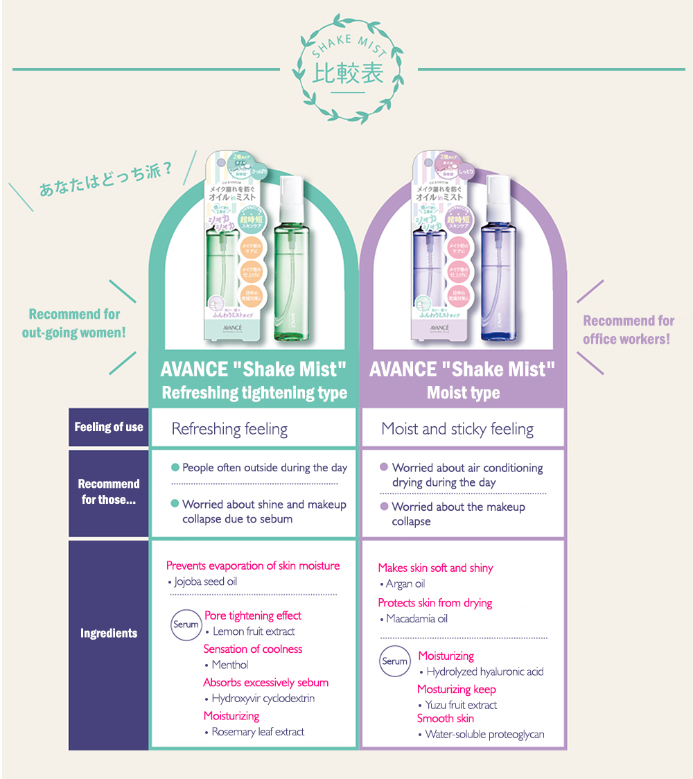 A balanced, serum and oil mist to be used alone, before or after makeup. Use as a lotion and/or as a makeup setting spray. Moist is recommended for those those concerned about dryness. Mist is made with a well balance of serum to tighten skin and oil to hydrate the skin. Prevents skin from dehydrating and keeps make up in place by locking in moisture.