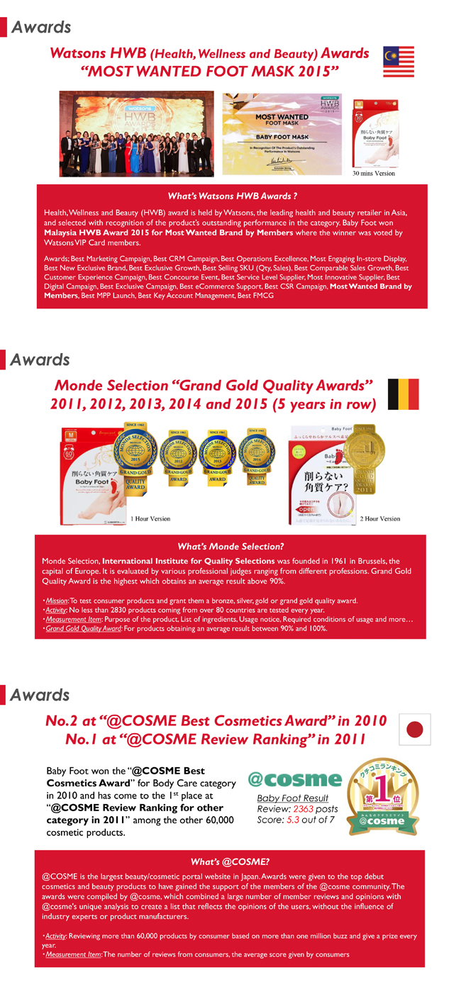 More and more people are having various troubles with the soles of their feet because their feet and legs are forced to be overworked in the modern society. The soles, however, do not attract public attention and therefore, not many people take good care of them. Baby Foot was developed, in particular, to care for the dead skin cells on the soles of the feet, which create problems. Baby Foot maintains and cares for the soles of your feet.