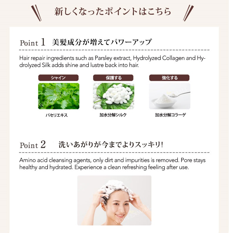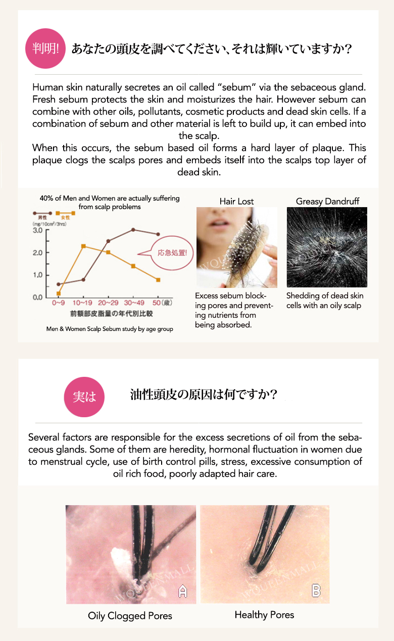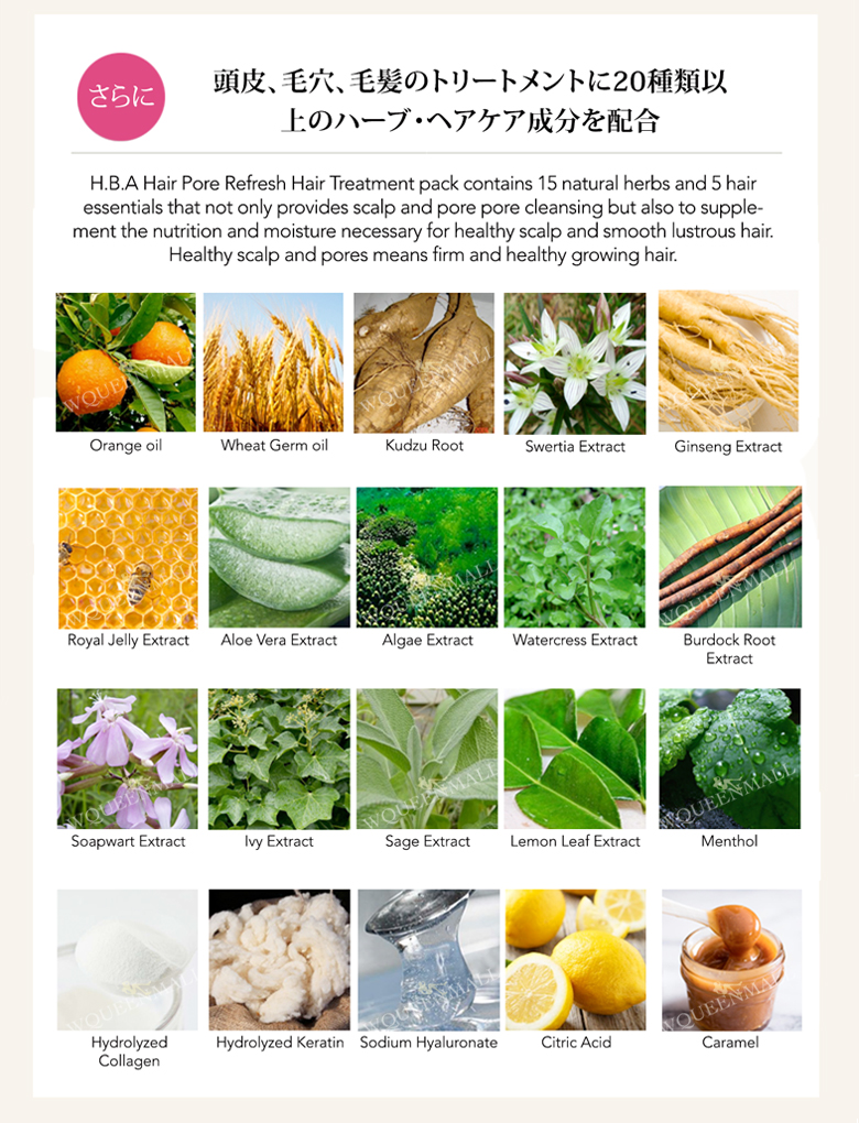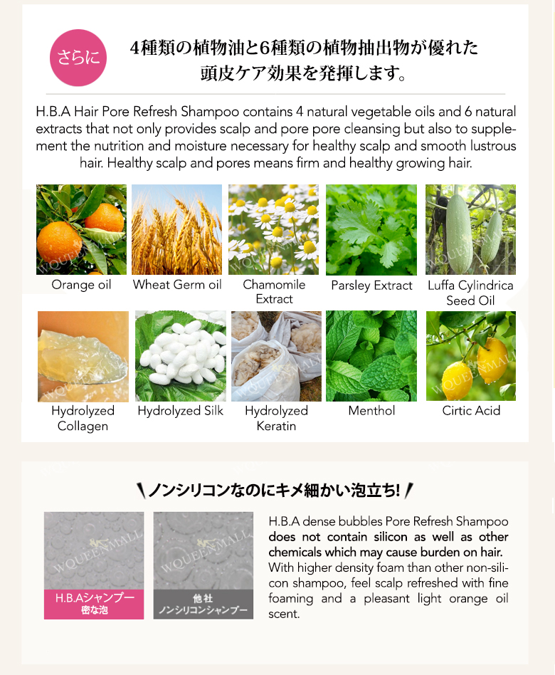 • 6 natural extracts that not only provideds scalp and pore cleansing but also supplement the nutrition and moisture necessary for healthy scalp.