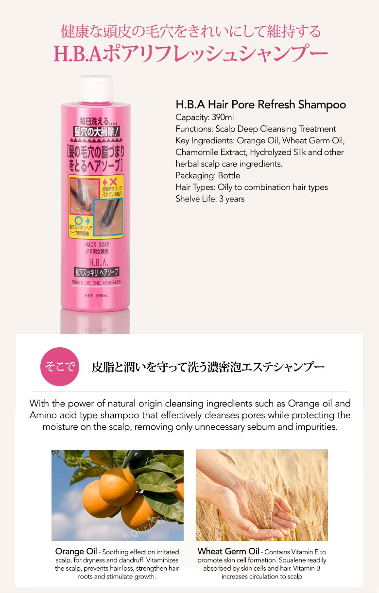 H.B.A Hair Pore Refresh Shampoo 390ML