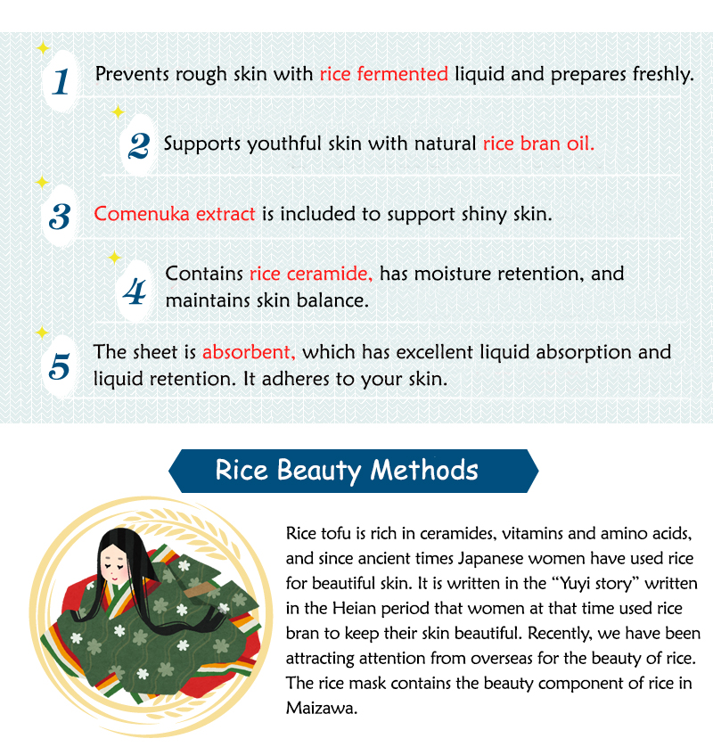 A pack of 10-sheet mask infused with serum featuring a blend of 4 domestic Japanese-grown rice derived ingredients to naturally restore and maintain healthy skin barrier while supporting optimal oil-water balance. Skin feels nourished, plumped and radiant after use.