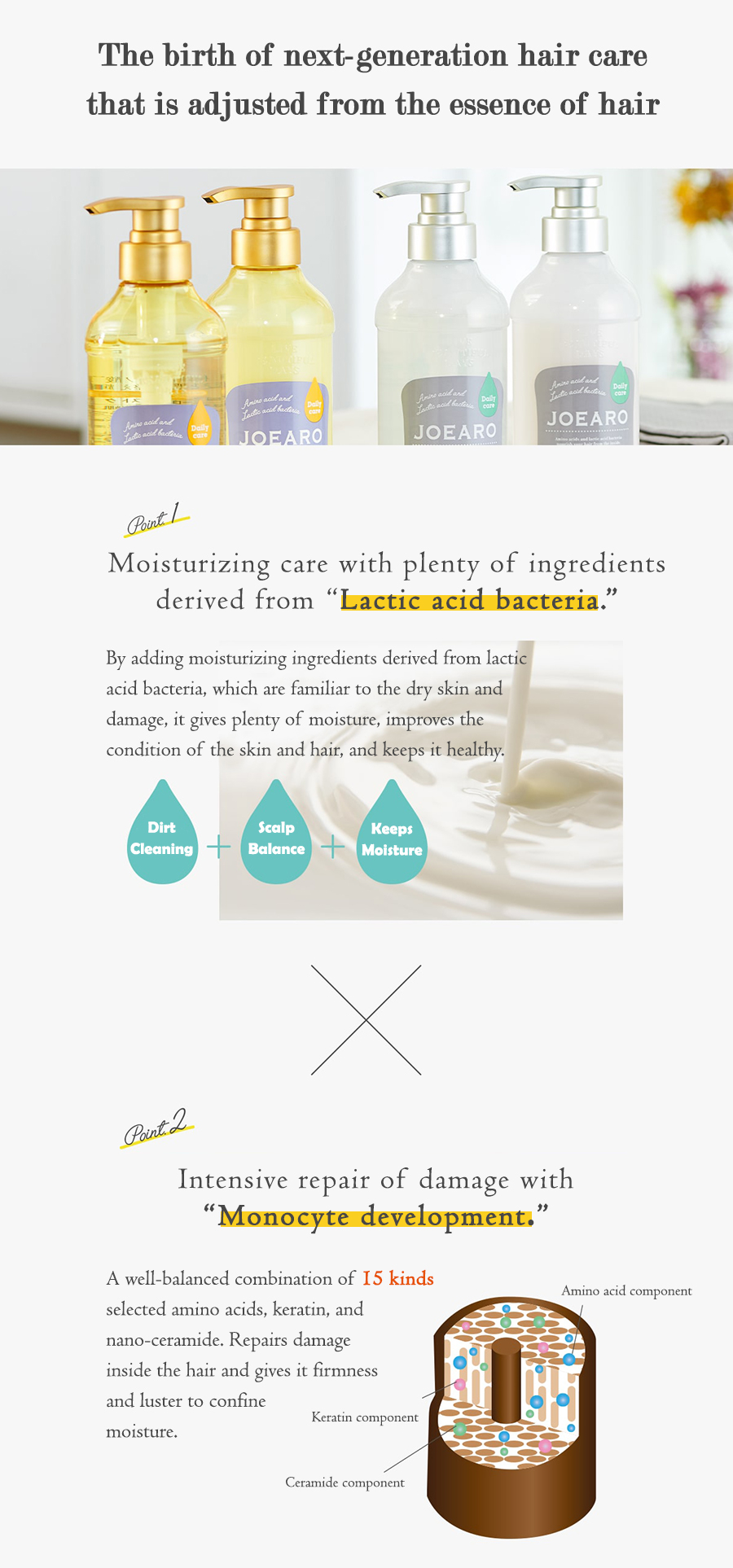 Infused with lactic acid bacteria (lactobacillus probotic) and 15 types of amino acids for soft, light and supple hair. Silk base cleansing ingredient provides suppleness to hair. A moist veil of mango, macadamia, avocado and argan oil wraps your hair and moisturizes. Gently washes and removes the sebum and dirt inside the pores while providing a healthy scalp condition. Lightens and increases hair volume, ideal for curled and volume hair. Magnolia & fruity musk scent.
