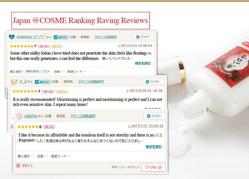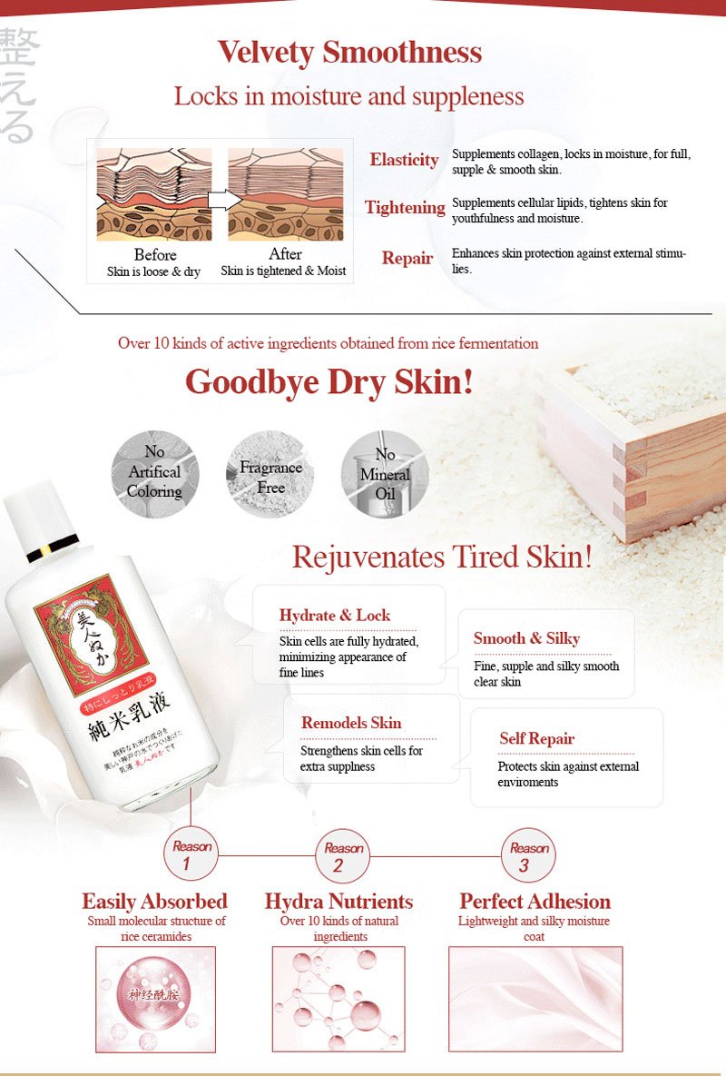 Key Ingredients: Rice germ oil·Rice bran extract·Hyaluronic acid·Squalane·Rice oryzanol·Koshihikari rice essence·Rice ceramide