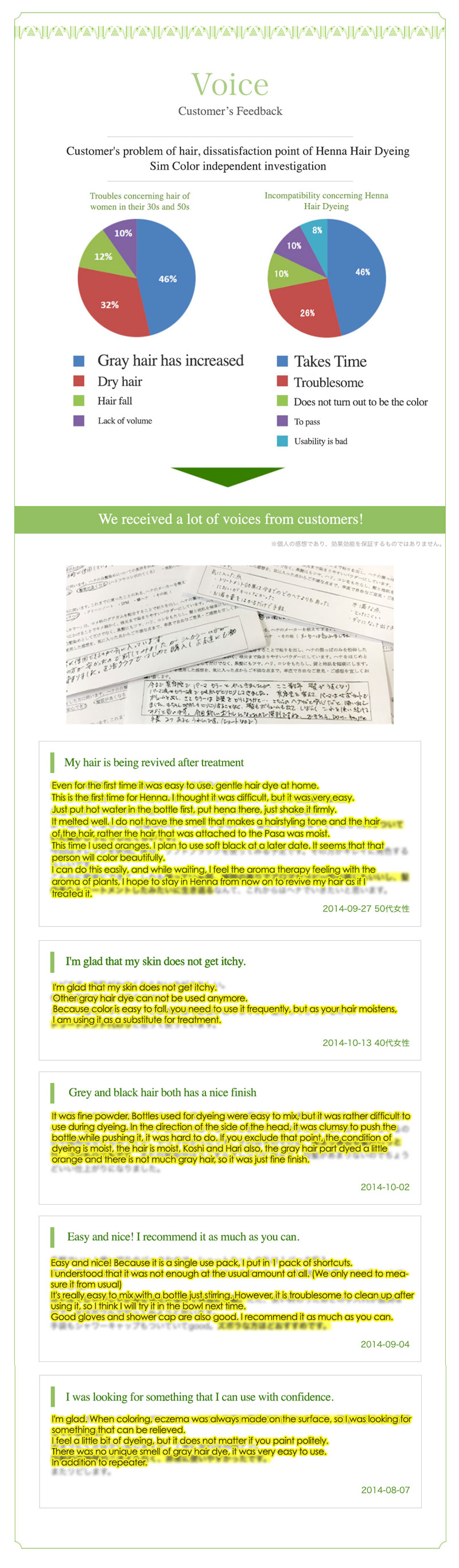 1. Put hot water and Henna into the shaker. Shake well to mix. 2. Wear the gloves and cape turben, and apply the paste to top of head all the way to hairs end. Cover hair with cape turben, and leave it on for about 30 minutes. 3. Rinse hair well with warm water.