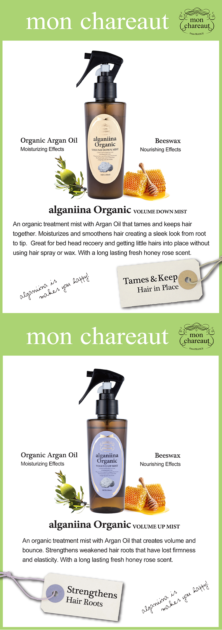 mon chareaut alganiina Organic Volume Down Mist 150ml