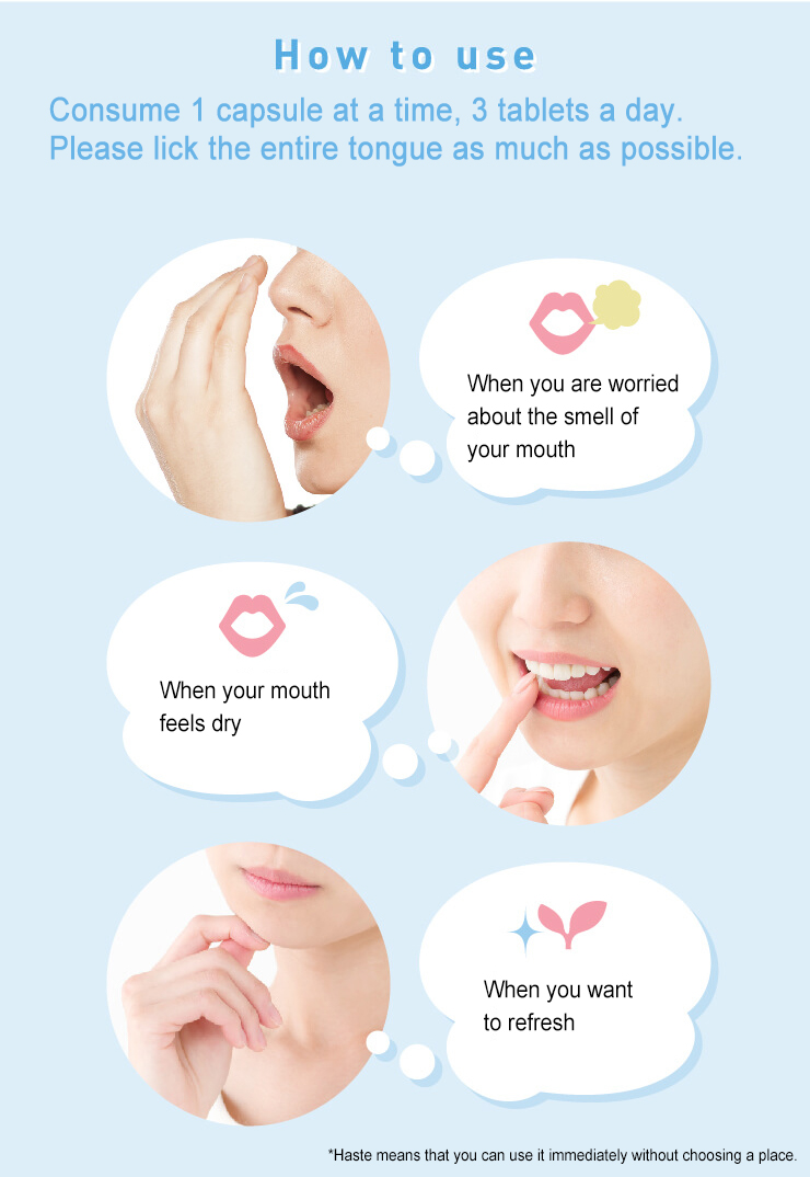 Please take 1 tablet at a time, 3 tablets daily as a guide. Please lick it with your whole tongue as much as possible. .