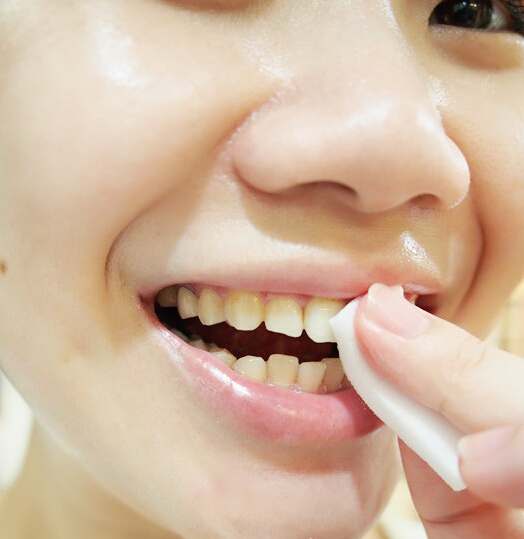 Remove the sponge from the bag and remove the dirt or stain by rubbing sponge on the part of the tooth with stain.