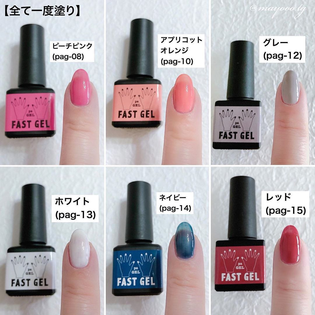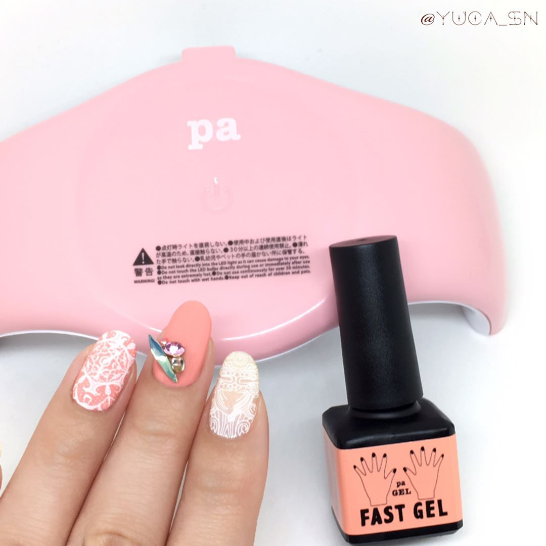 (1) Apply fast gel without sanding. (2) Cures for 30 seconds with LED light.* Repeat (1) ~ (2) to improve color