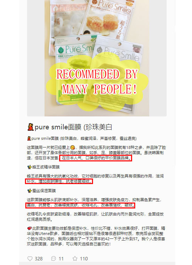 Use on freshly cleansed skin after preparing skin with toner. Position the sheet to align with the eyes and mouth, then smooth to fit closely with the entire face. Remove the mask after 15 – 20 minutes and follow with usual skincare products. Suitable for use daily