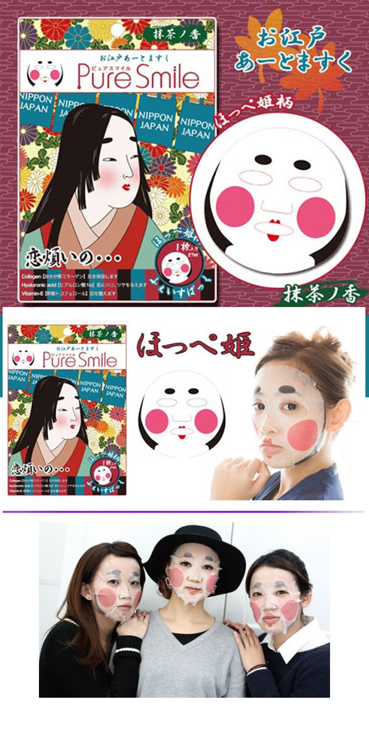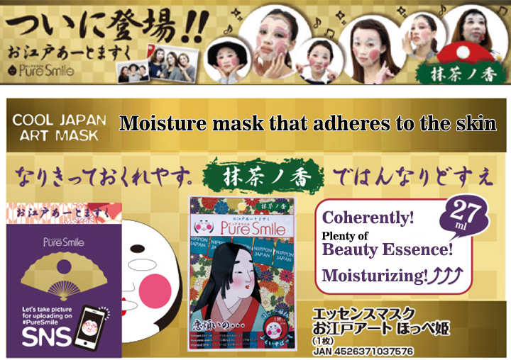 Pure Smile Art Mask allows you to experience the Japanese culture of Oedo Art when you are applying the mask! It comes with a scent of green tea and is formulated by collagen and hyaluronic acid to moisturize and protect skin. Instantly smooths and tones skin and provides the skin with luster.