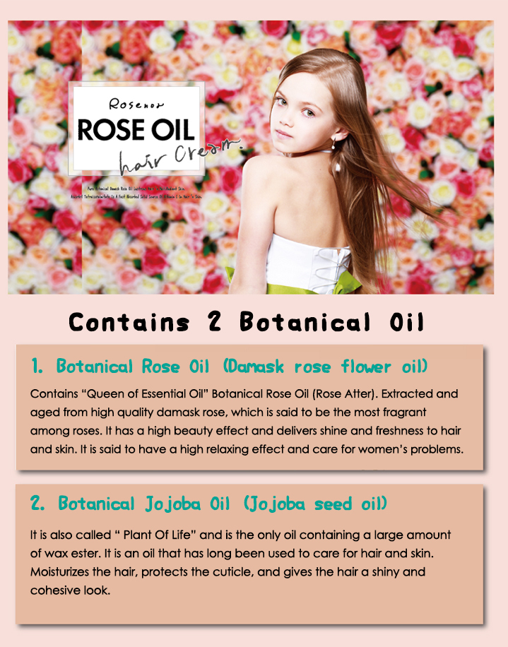 An ultra moisturizing hair cream made with botanical rose oil extracted from Damask Rose for lustrous and velcety hair. With keratin and vitamin for hydrating and nourishing properties. This cream makes it easy to achieve moisturized, easy to manage hair, down to the roots. Rose scent.
