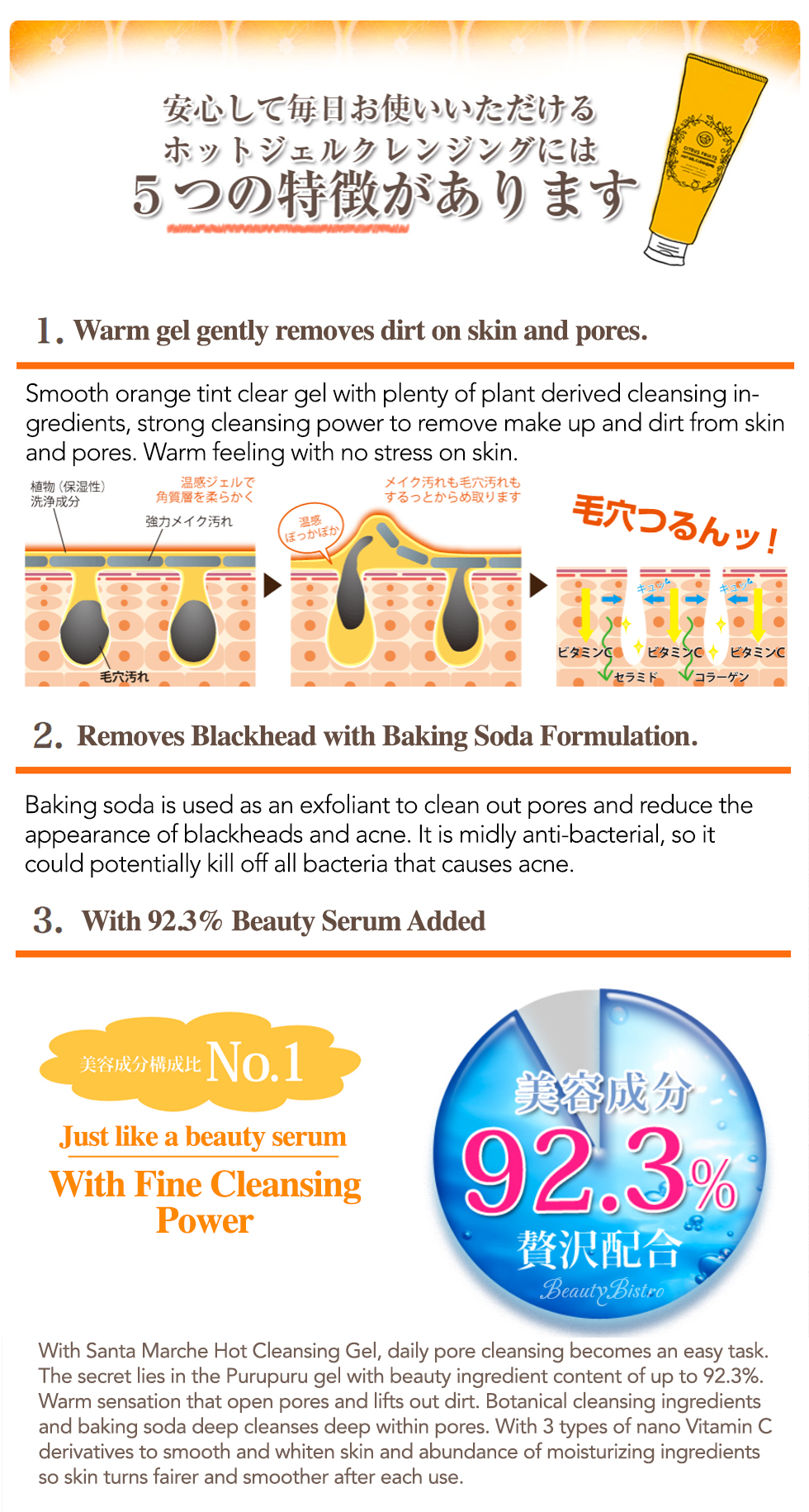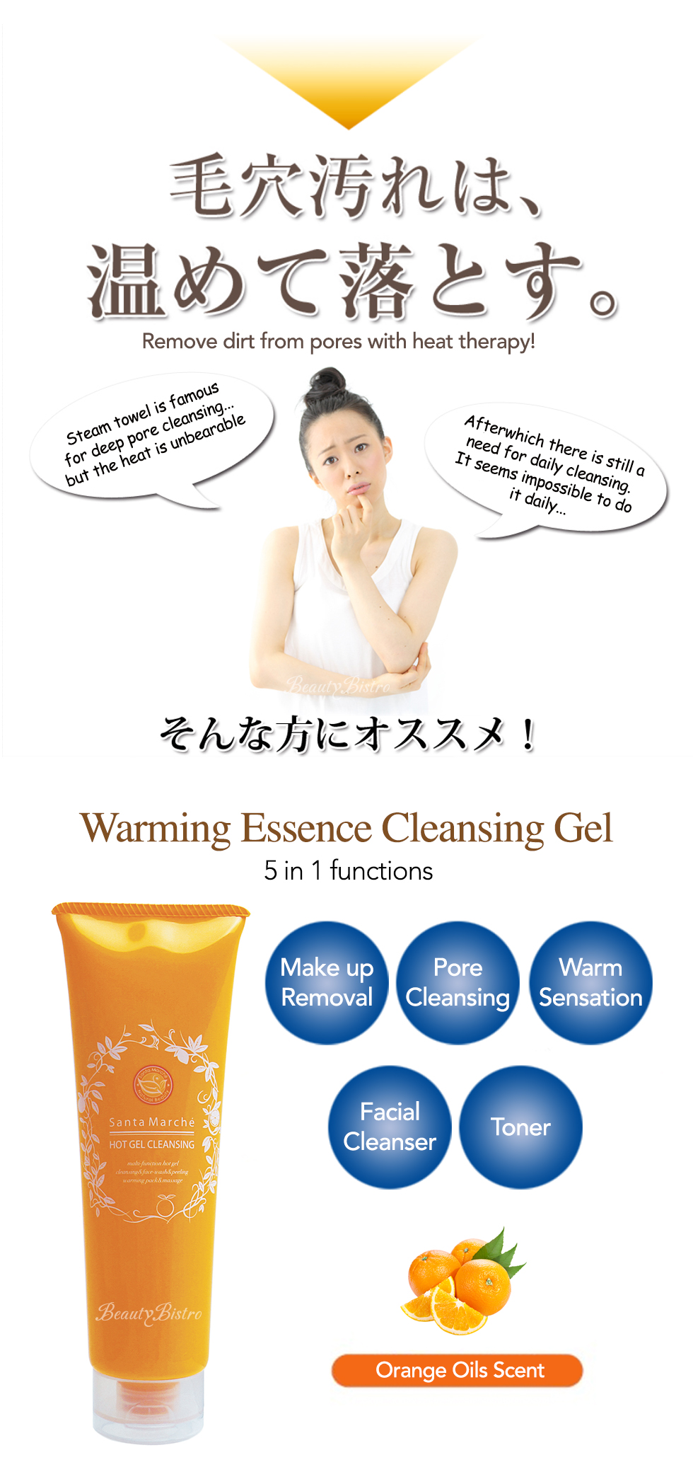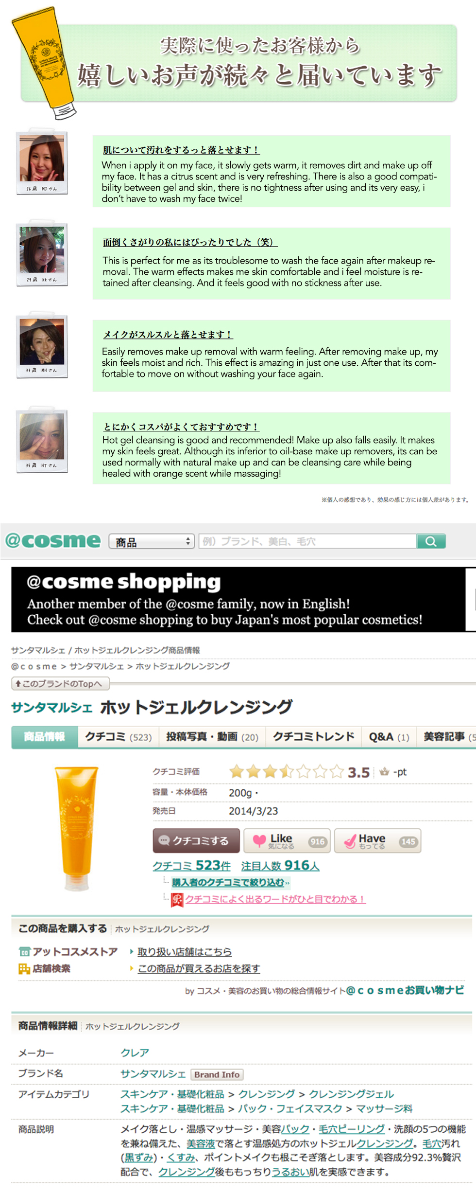 Place a cherry sized amount on wet hands. Gently massage face and you will experience instant warmness. When make-up and dirt rises up, rinse thoroughly with water. (No further cleansing is necessary)