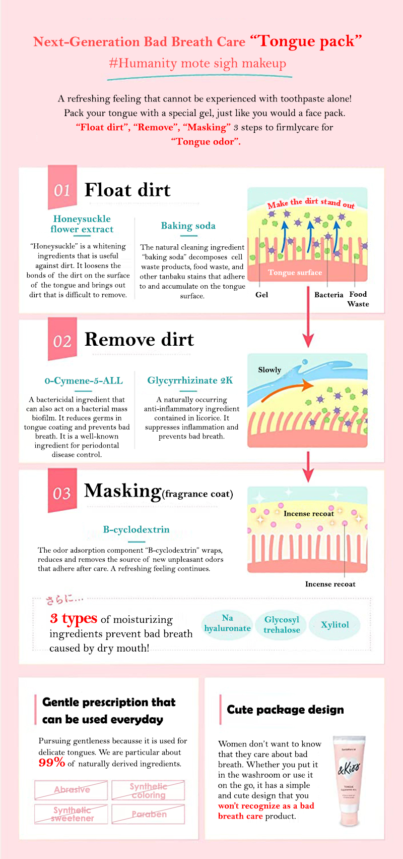 A cleaning gel made specifically to care for the tongue. This unique gel lifts, removes and masks the impurities and odor on the tongue. Add it to your oral hygiene routine right after you brush your teeth for a quick and easy tongue cleanse. A hypoallergenic formula that is gentle on the tongue. Made with 99% organically derived ingredients and is free of abrasives, synthetic coloring, synthetic sweeteners and paraben.