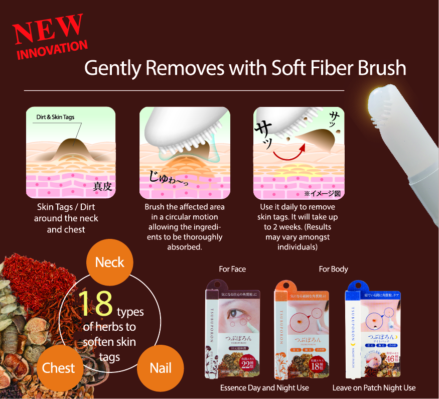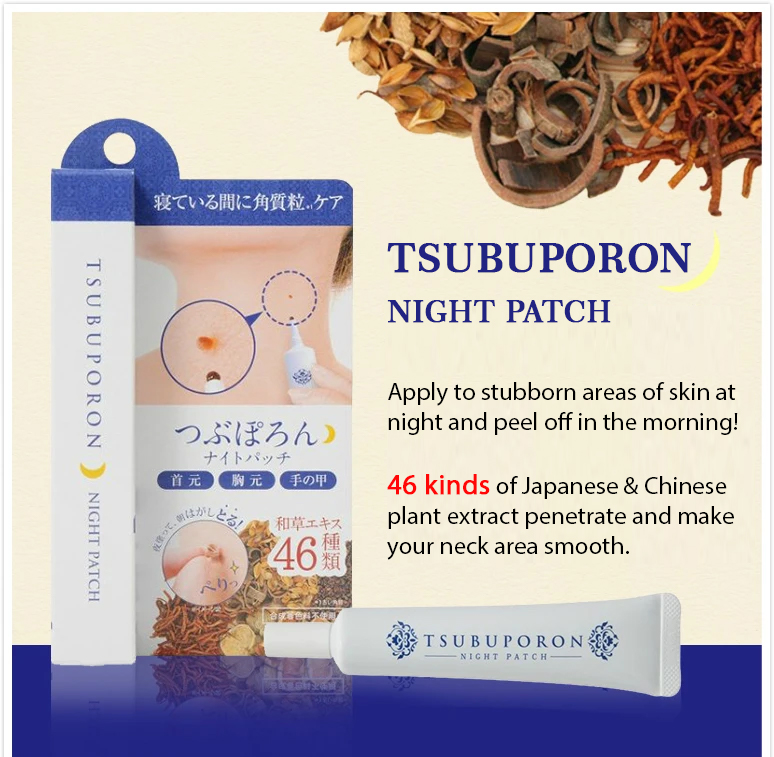 they grow darker and tougher over time. Tsubuporon night patch helps by softening and removing neck warts while
