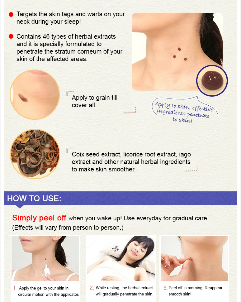 you sleep. Made with 46 types of Japanese and Chinese plant extracts that peels of warts and milla by continue use.